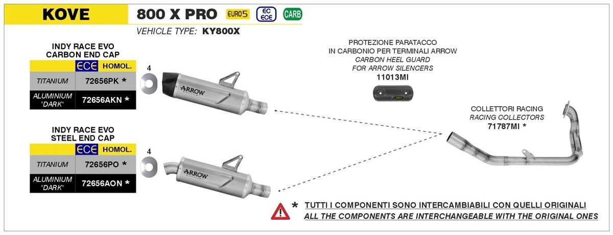 Arrow Indy Race EVO Titanium silencer with carby end cap street legal for Kove X 800 Pro 2024