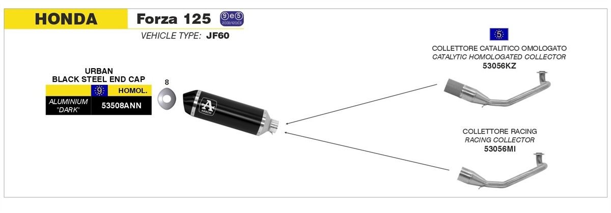Arrow Racing collector for Urban Exhaust no street legal for Honda Forza 125 15-20