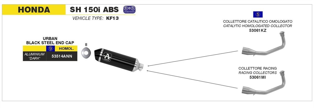 Arrow Racing collector for Urban Exhaust no street legal for Honda SH 150 i ABS 12-16