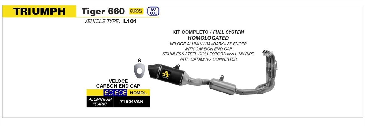 * NOTE Meeting the standards above is guaranteed only if the original catalityc converter is not removed our when fitting as Arrow silencer and catalityc converter approved following the standards referred above