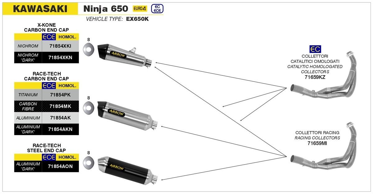 Arrow Race-Tech aluminium silencer with carby end cap street legal for Kawasaki Ninja 650 17-20
