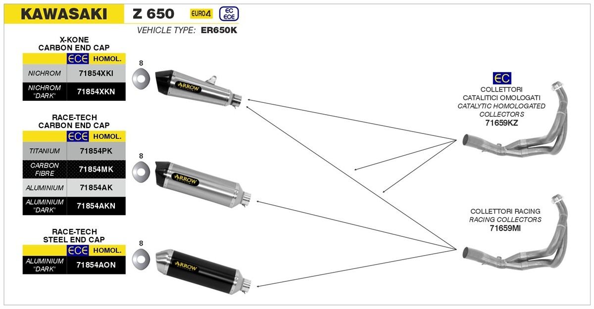 Arrow is the privileged technical partner of Aprilia, Betamotor, Husqvarna, Moto Guzzi, MV Agusta, KMSB (Kawasaki Malaysia), Piaggio and Triumph.