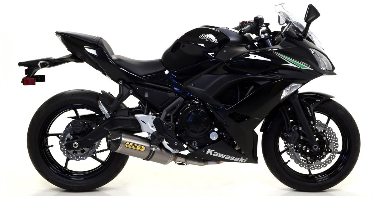 Arrow Race-Tech aluminium silencer with carby end cap street legal for Kawasaki Ninja 650 17-20