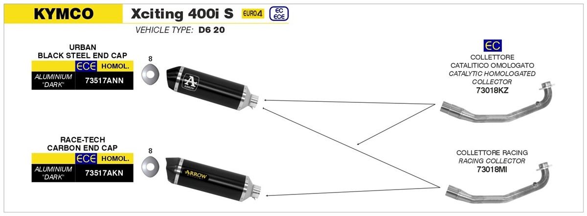 Arrow Catalytic collector street legal for Kymco Xciting 400 I S E4 19-20