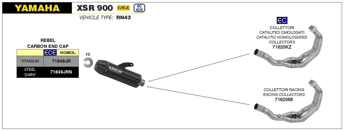 Arrow Catalytic collectors kit street legal for Yamaha MT-09 13-20