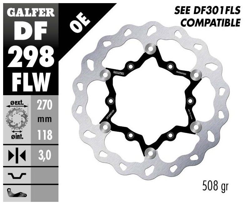 Brake disc Front Galfer WAVE FLOATING with Steel centre for Fantic XEF 250 21-23 (1 disc) diameter OVERSIZE 300mm (may be used by adding spacer under the OEM calipers)
