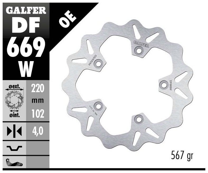 The “Disc Wave®” represents the best example of research and development by Galfer. Laser cut, stainless steel. There is a direct application of competitive technology for any user. Direct replacement system that does not require brackets or any extra parts, it bolts just like a stock disc would.