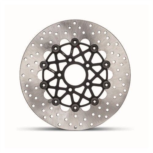 BREMBO RACING SUPERSPORT 5,5-mm discs are fully interchangeable with the original discs and they are designed to fit to the OE calipers as well as with BREMBO Racing. These are floating discs made up of a brake rotor in thermically-treated martensitic stainless steel (capable to stand any thermomechanic strain) and of an CNC alloy-aluminium bell. These two parts are connected to each other using 10 bushings.