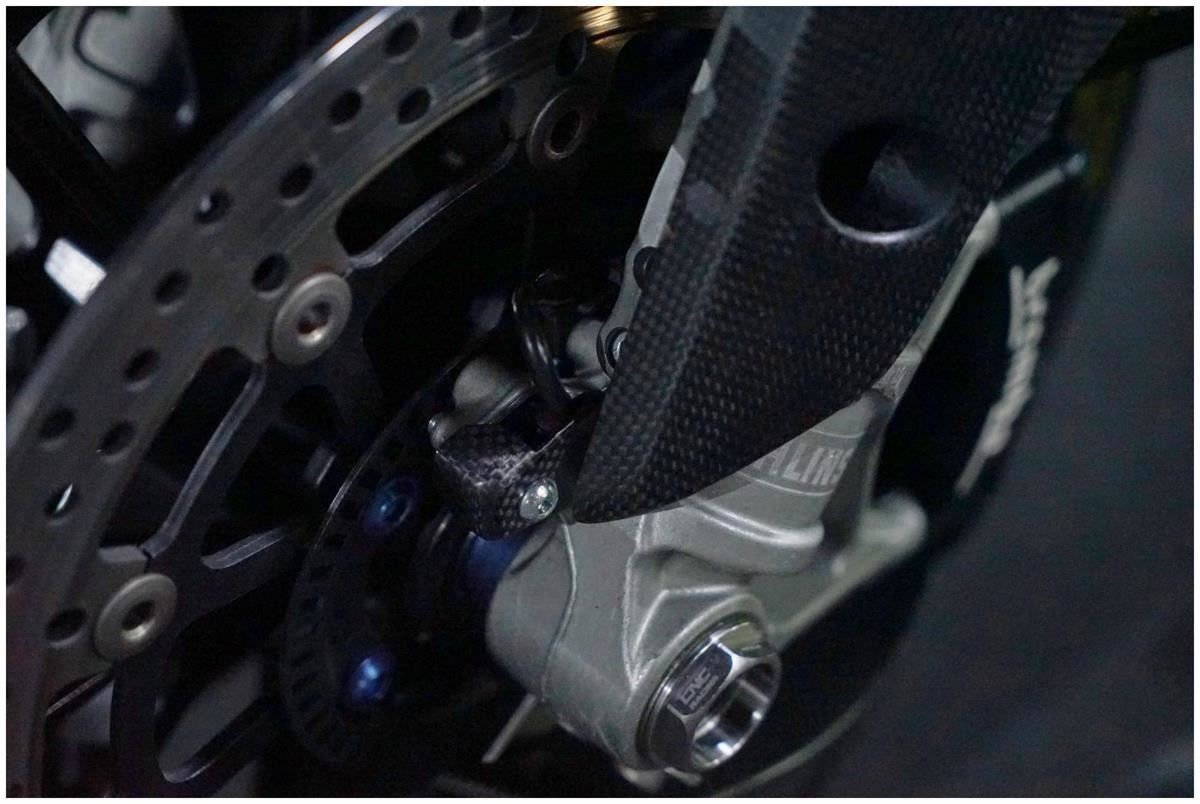 ABS sensor protection carbon for Ducati. Made of matt finish carbon using an autoclave process and hand finished for product quality and uniqueness