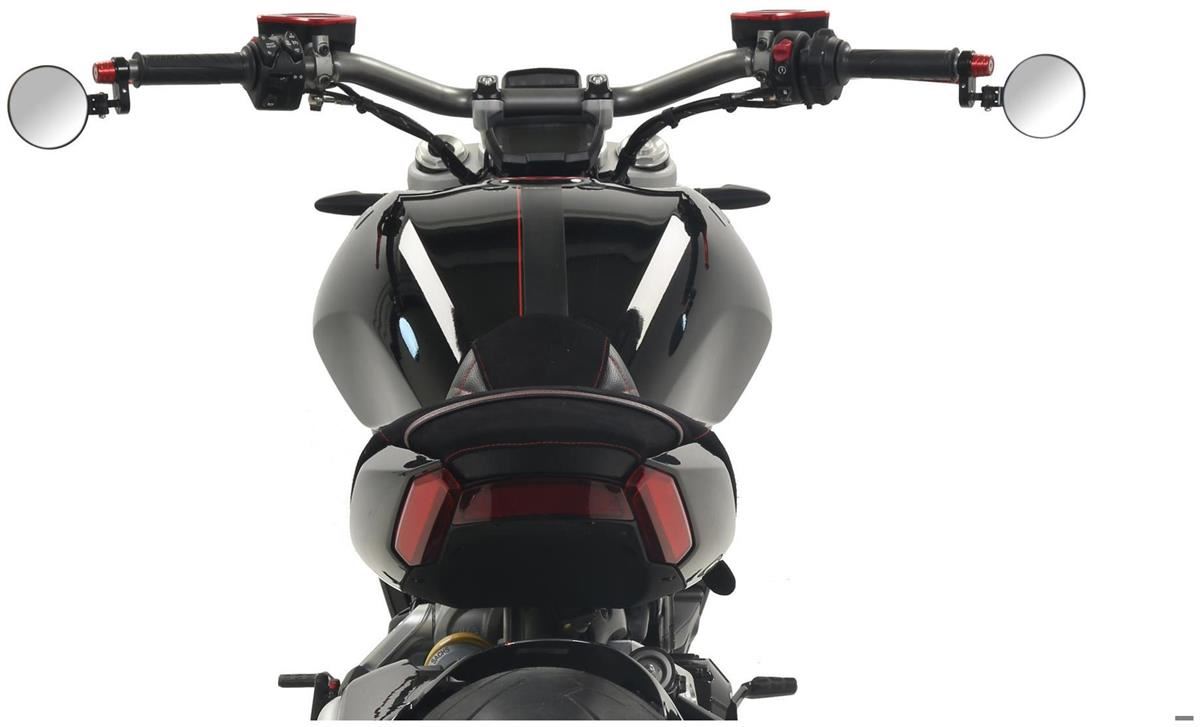 The mirror can be fitted in either low or high position and is compatible with most handlebars, both original and non, with an expansion assembly system (handlebar internal diameter Ø 13.5/19 mm) or with a M6 screw, included in the package.