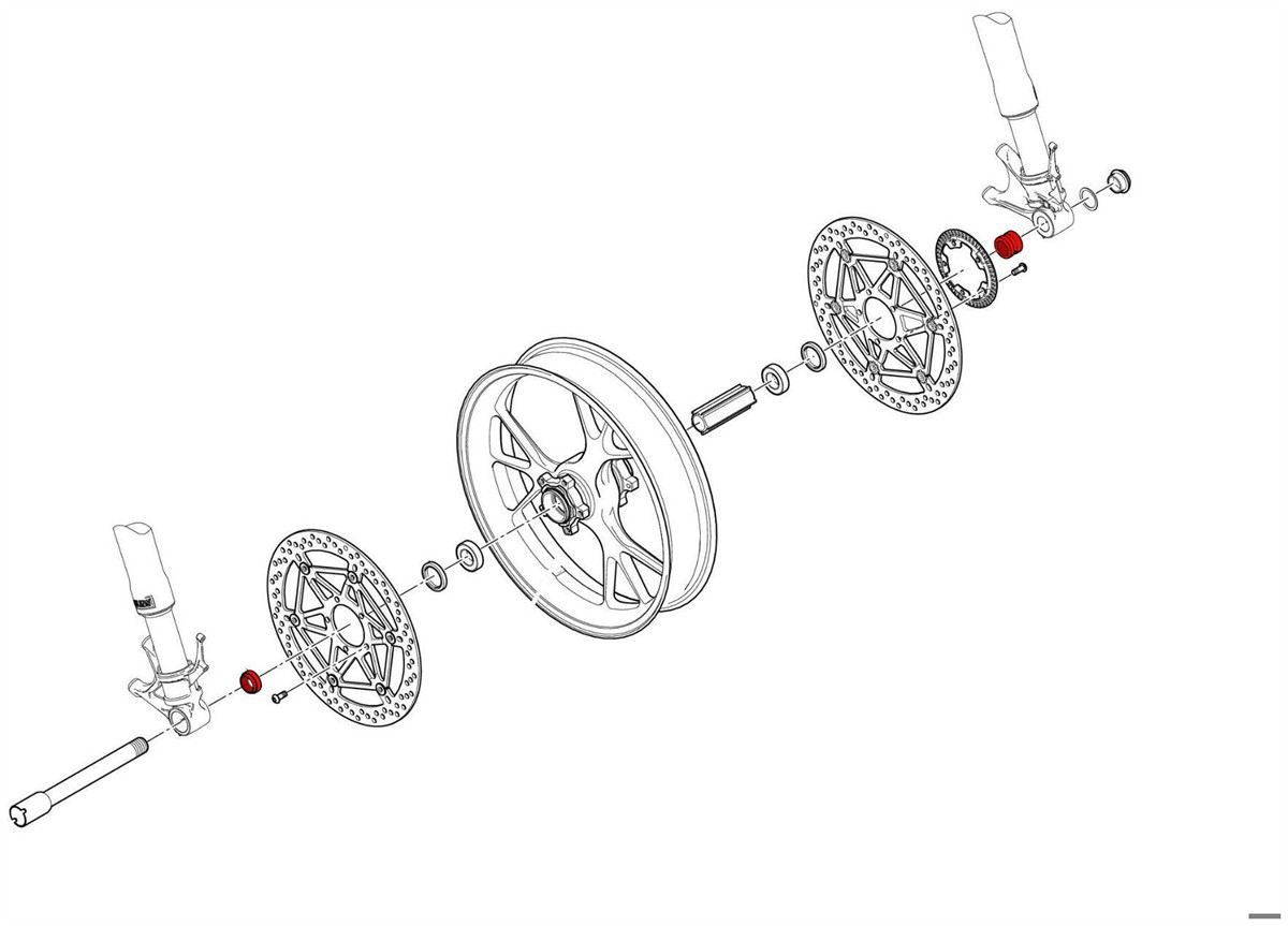 Spacers kit for Ducati front wheel made in light alloy, machined from solid and then anodized.