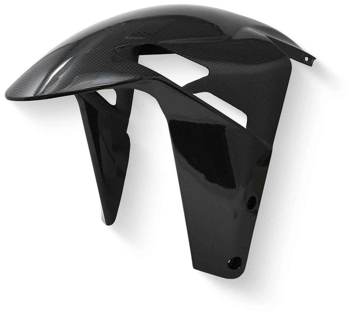 Front fender in carbon fiber, made of glossy finish carbon using an autoclave process and hand finished for product quality and uniqueness.