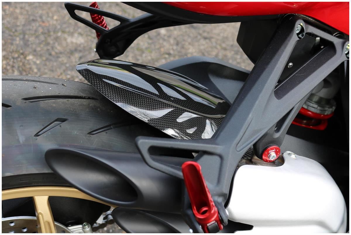 Rear fender in carbon fiber, made of glossy finish carbon using an autoclave process and hand finished for product quality and uniqueness.