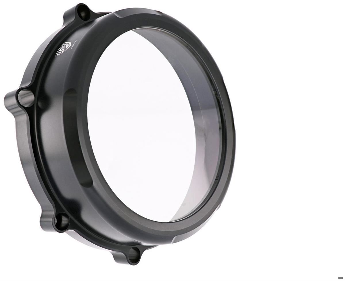 Clear cover for Ducati dry clutch made in light alloy, machined from solid and then anodized.