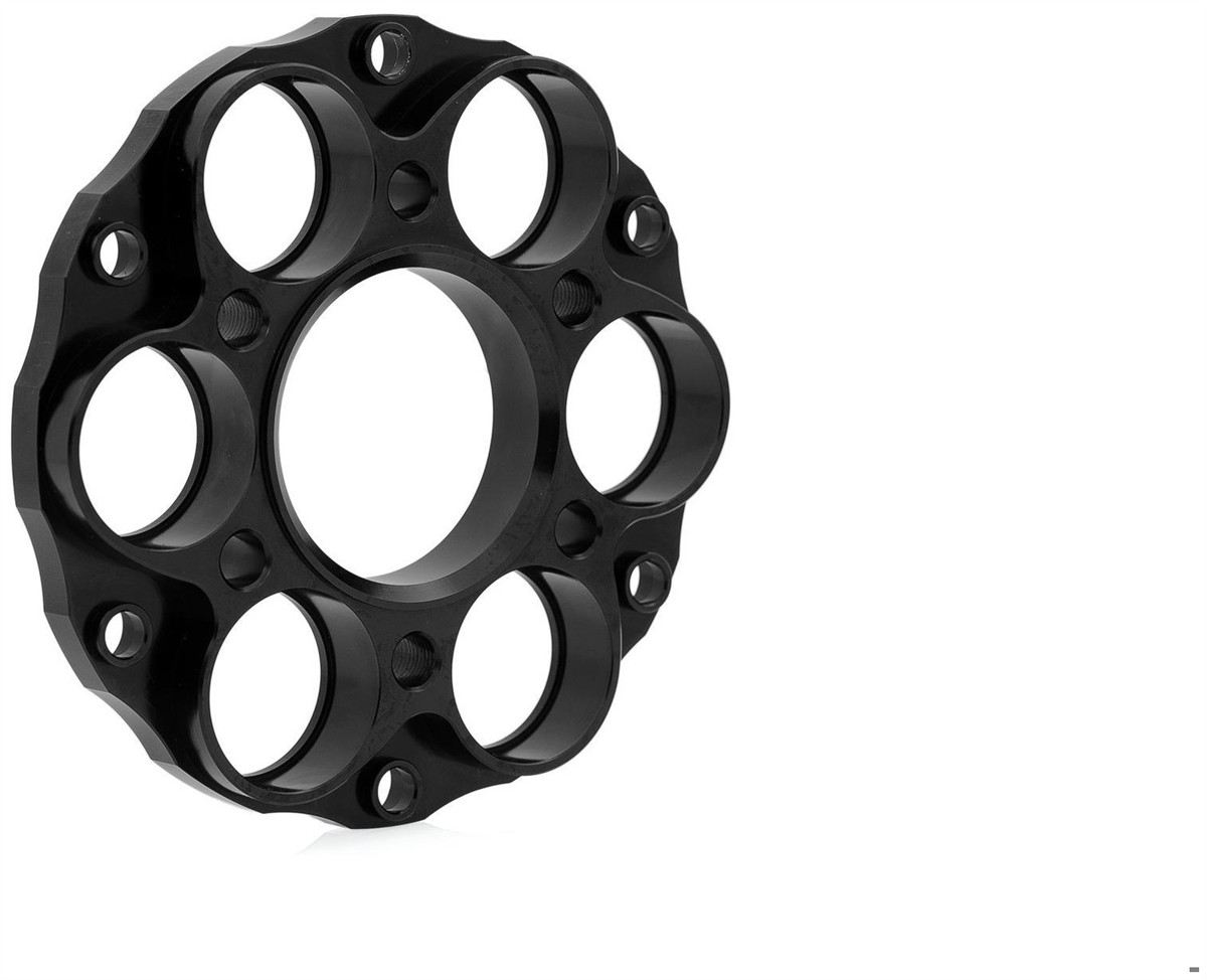 Cush drive hub flange CNC machined from light alloy billet and then given a coloured anodized surface finish. Installation screws are supplied.