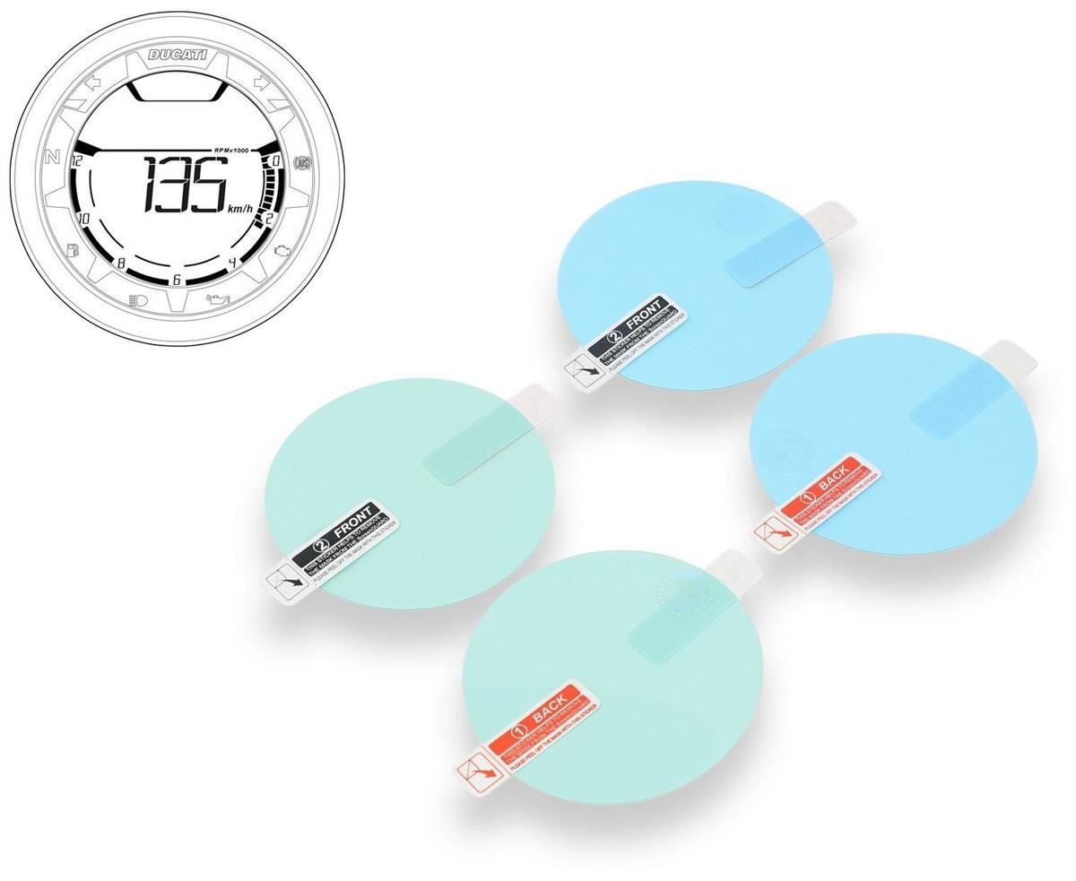 Instrument protection film kit consisting of: 2 anti-scratch films protecting from scratches and dust 2 anti-scratch and anti-glare films protecting from scratches and reducing harmful glare for good data display 1 product application kit for easy DIY fitting Detailed assembly instructions