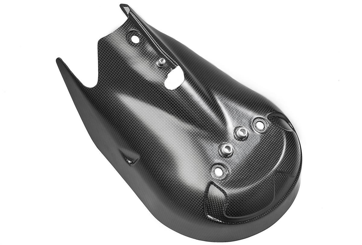 Heat shield exhaust made of matt finish carbon using an autoclave process and hand finished for product quality and uniqueness.