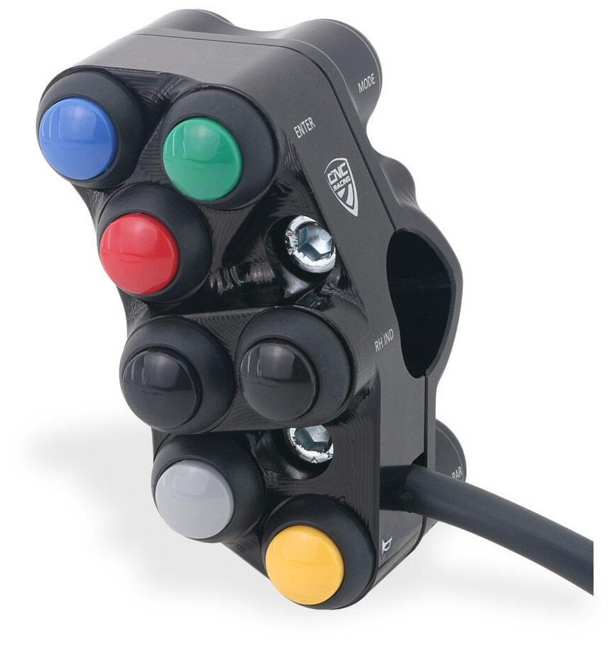 Assembly is very easy and plug&play: just dismantle the original switch with the tools recommended by the Manufacturer, then fit the CNC Racing switch connecting the plug to the bike original cable. Nothing else is required and you can always go back to the original configuration without any modification.