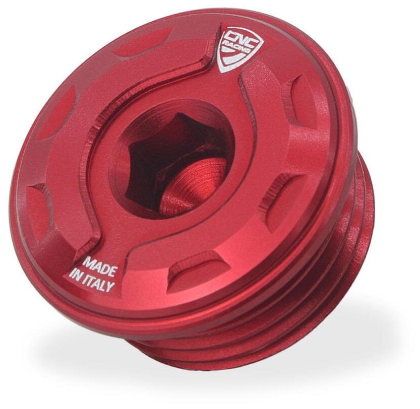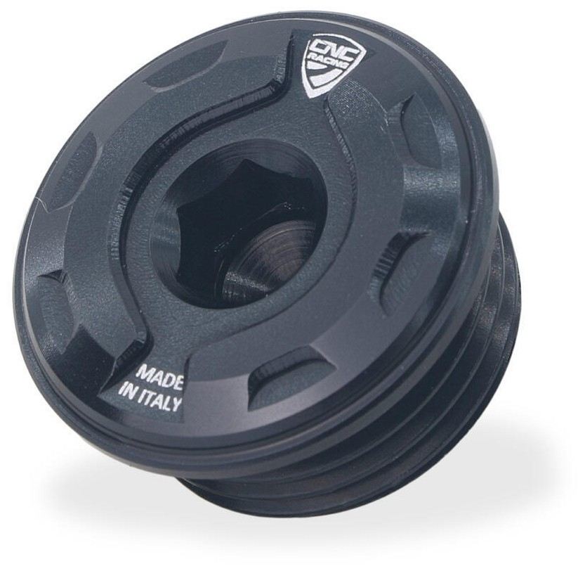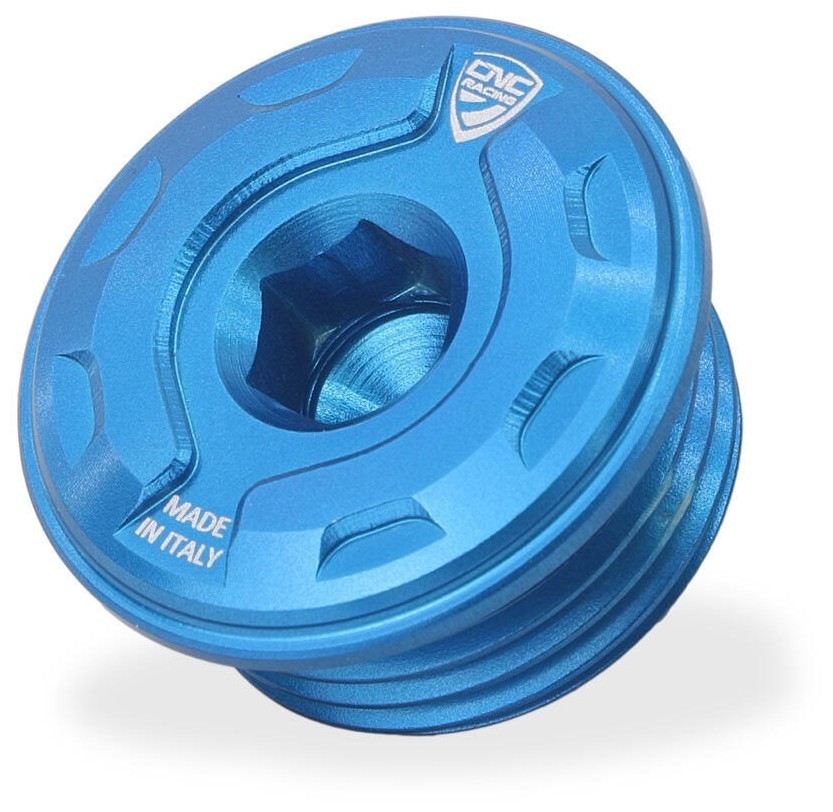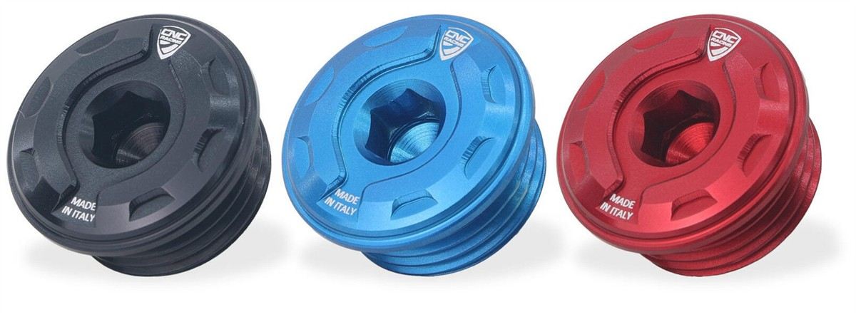 Oil filler cap machined from light alloy billet and then given an anodized surface finish. It replaces the stock plastic part, enhancing the look of the engine.