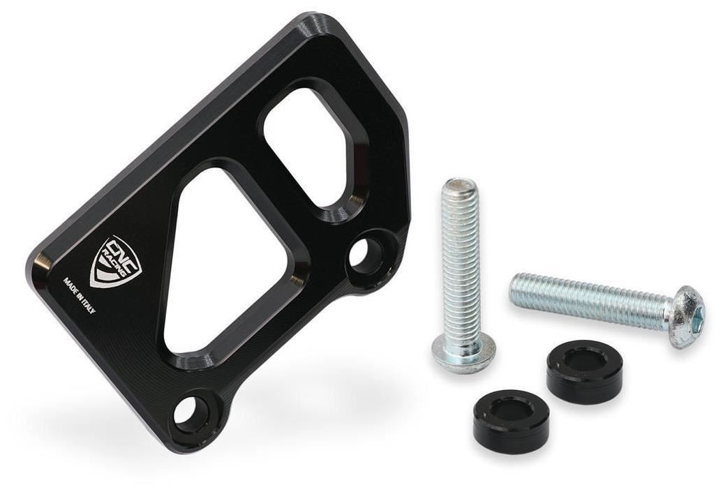 Rear brake master cylinder protector for CNC Racing rearsets made in light alloy, machined from solid and then anodized.