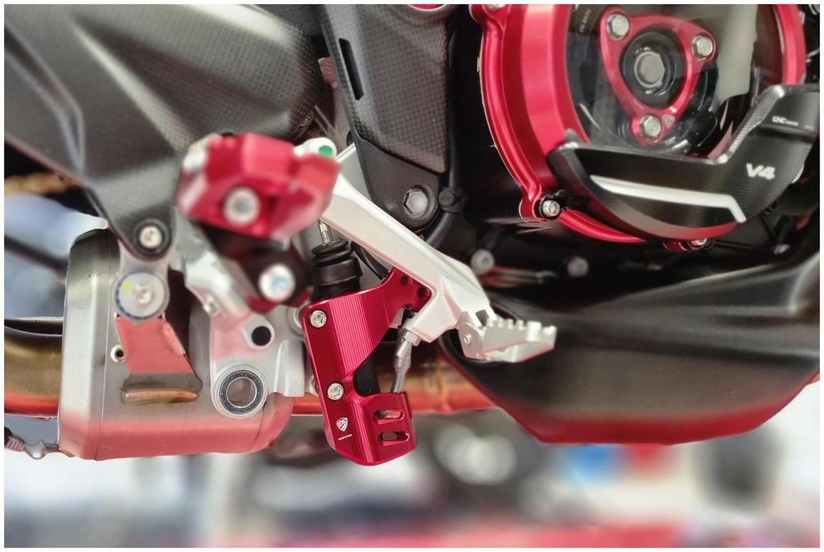 Rear brake master cylinder Ducati Multistrada V4 protector made in light alloy, machined from solid and then anodized.