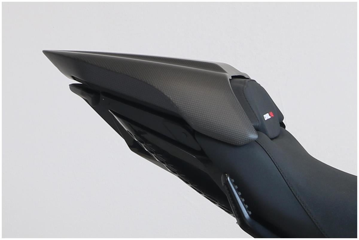 Rear seat cover for Ducati Diavel V4 made in carbon fiber texture plain with autoclave process.