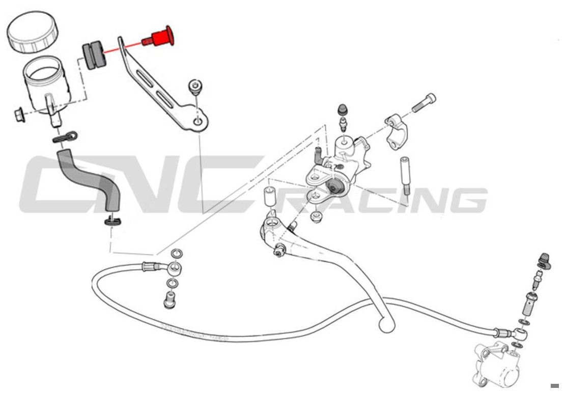 Screw front brake or clutch tank fluid machined from solid aluminium alloy with anodized surface after treatment.