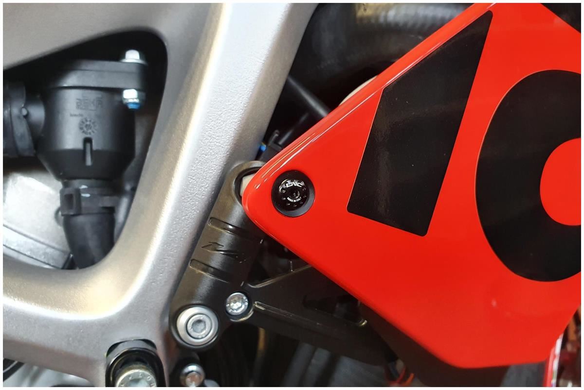Screw kit for Aprilia Tuono side fairing made from solid aluminum alloy with anodized surface next.