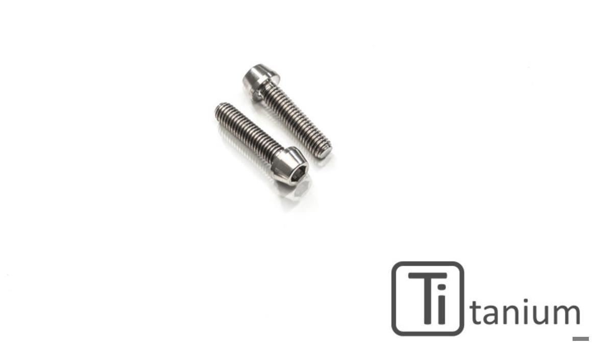 Our titanium kit has been manufactured using a CNC machine from billets: it is made from Grade 5 Titanium which is really light and has great anti corrosion benefits.Kit is composed of:2 screws M6x25