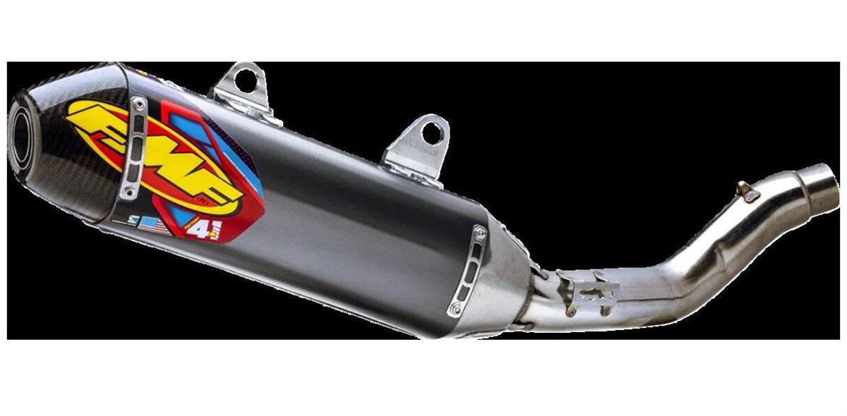 Factory 4.1 RCT Slip-On MufflerThe Factory 4.1 RCT incorporates FMF's Resonance Chamber Technology™ both internally and externally In addition, FMF achieves a shorter overall length that is less susceptible to crash damage and complementary to their Factory Forward Engineering - moving the muffler closer to the motor to centralize mass The Factory 4.1 RCT is constructed from only aerospace grade materials that meet their exacting specifications and is manufactured 100% at their Southern California factory Massive Power gains throughout the RPM range. Huge weight savings RTS (Rapid Tuning System)