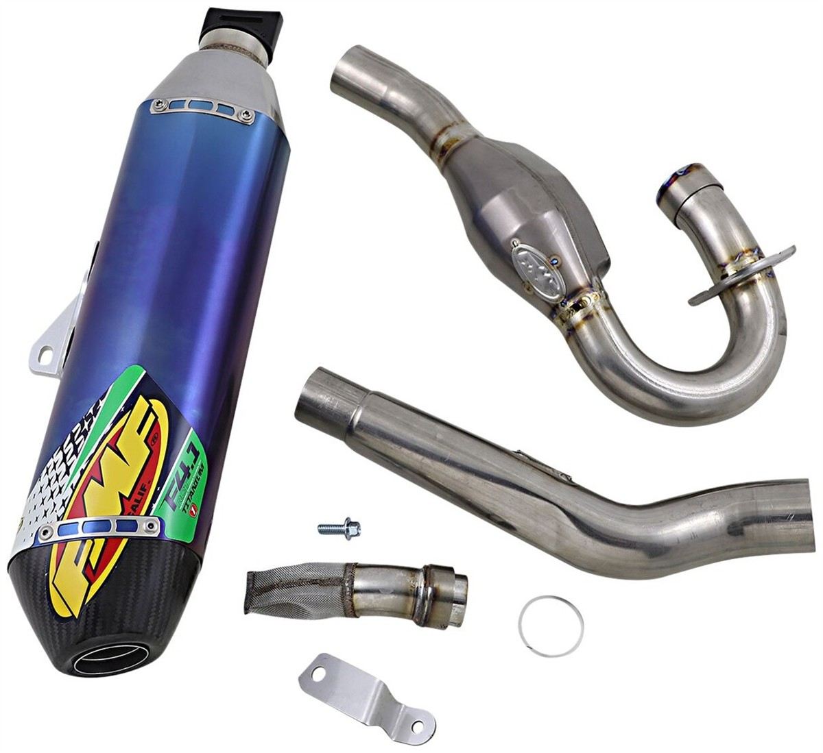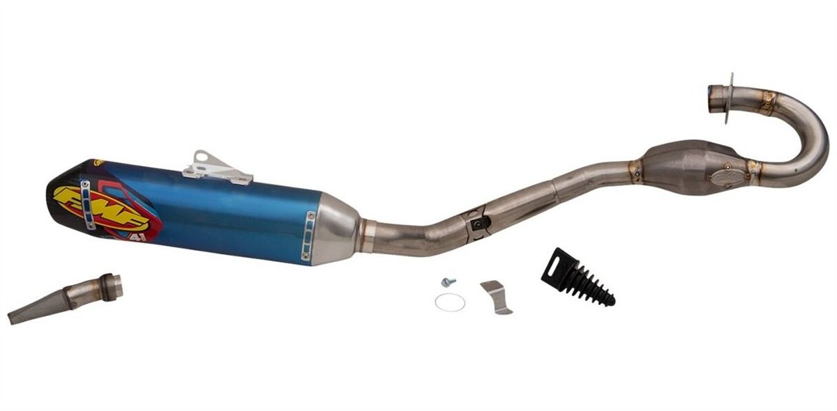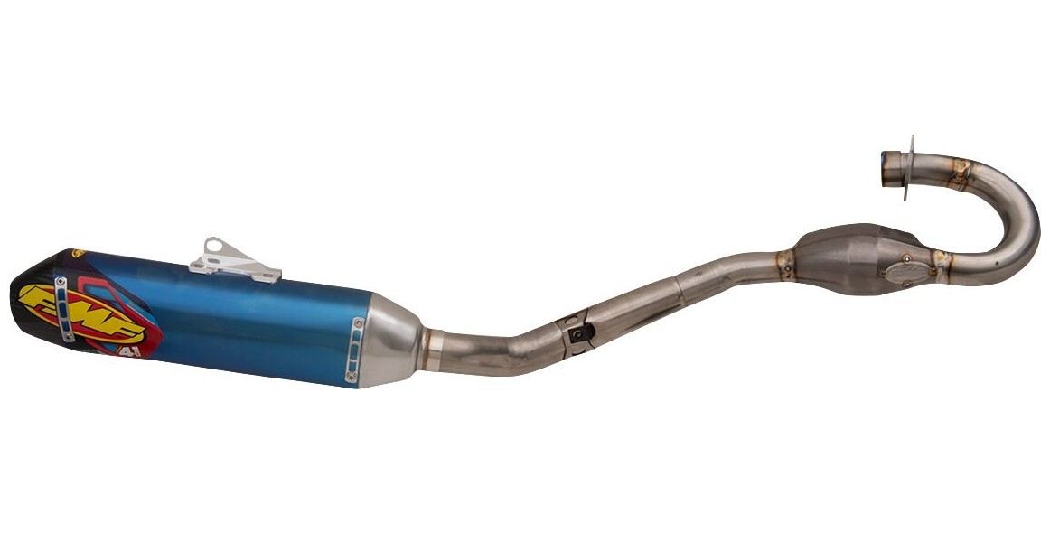 Factory 4.1 RCT Exhaust SystemThe Factory 4.1 RCT incorporates FMF Resonance Chamber Technology™ both internally and externally Shorter overall length that is less susceptible to crash damage and complementary to FMF's Factory Forward Engineering - moving the muffler closer to the motor to centralize mass The Factory 4.1 RCT is constructed from only aerospace grade materials that meet FMF's exacting specifications and is manufactured 100% at their Southern California factory Massive Power gains throughout the RPM range. Huge weight savings New RTS (Rapid Tuning System) Includes MegaBomb header Includes spark arrestor screen insert