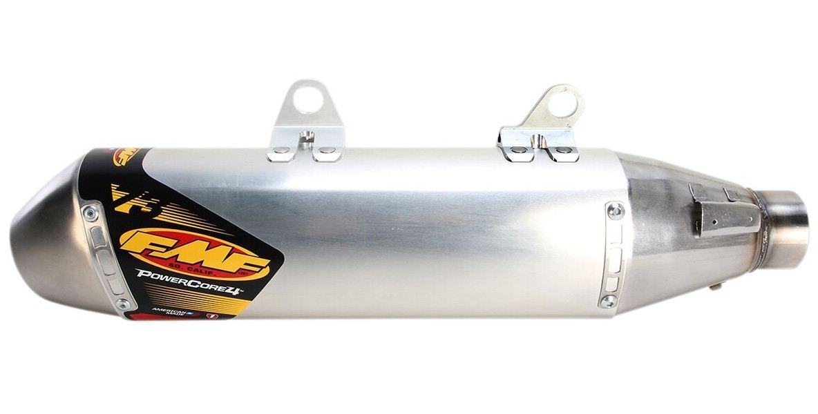 The 4-stroke motorcycles silencer PowerCore 4 has been designed and subjected by FMF technicians on a dyno-test to ensure maximum compatibility with all 4-stroke offroad bikes. The silencer is characterized by an elliptical alumimium body and by a coordinated stainless steel link pipe to achieve increased performance, moreover Hi-Flo technology allows an optimal exhaust gas flow, ensuring a further power increase. Some exhausts feature a unique HEX design, which gives the silencer a more aggressive style.