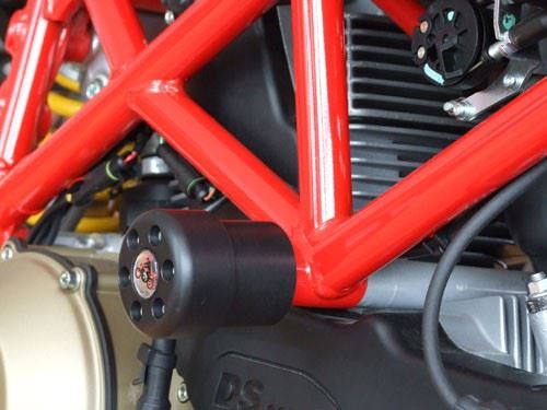 Six stainless steel springs support the visco-elastic impact absorber. in case of a crash the X-PAD compresses perfecty in a progressive way, absorbes the high impact energy and transformes it into a softer impact (see diagram). The patented Metisse X-PAD is the only slider that can offer this attributes. Individual bracket kits allow fitting without fairing modifications.