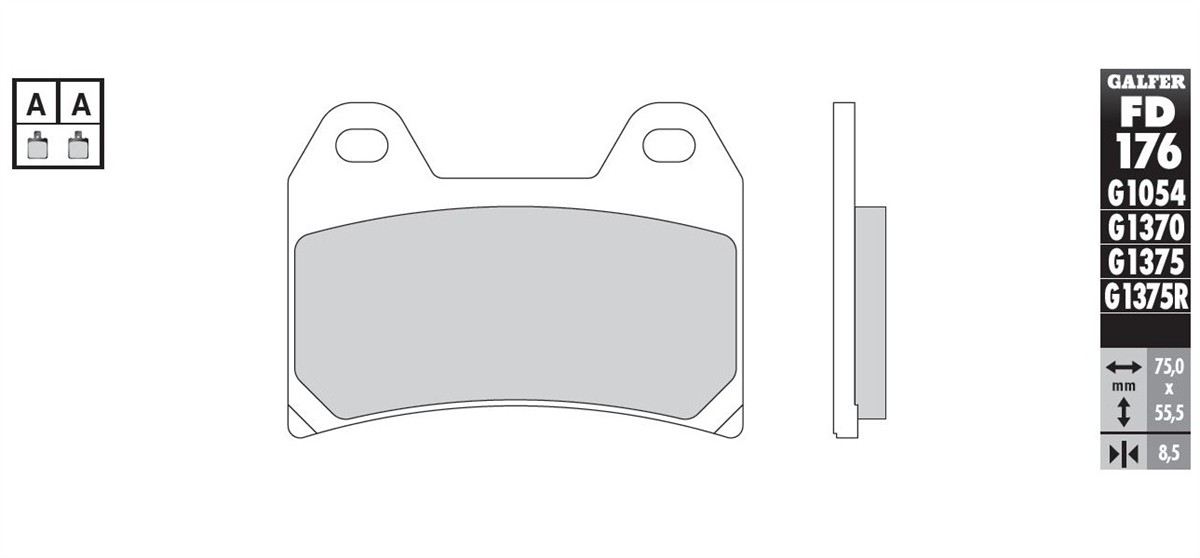 The Galfer G1050 brake pad is made of a semi-metallic compound and is designed for excellent performance and maximum safety even on small to medium-displacement motorcycles.