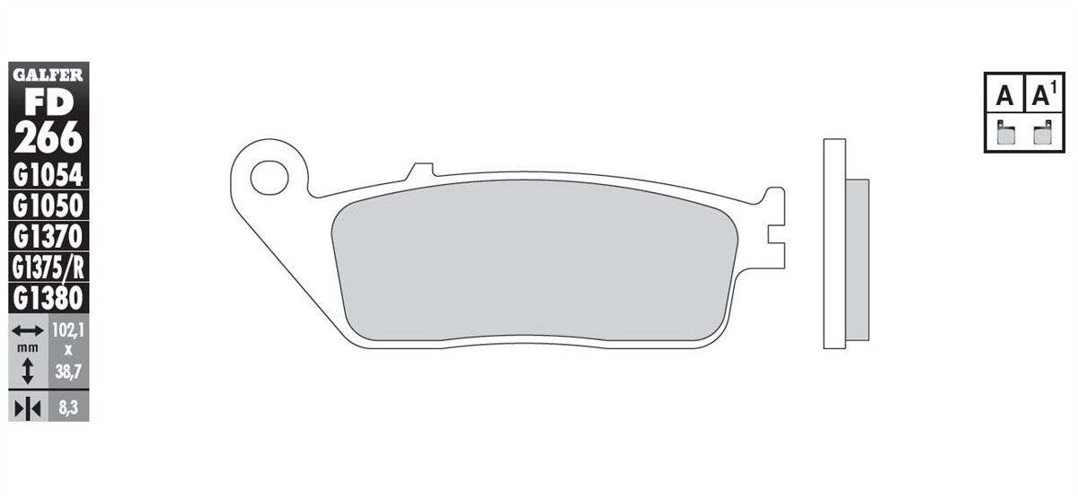 The Galfer G1050 brake pad is made of a semi-metallic compound and is designed for excellent performance and maximum safety even on small to medium-displacement motorcycles.