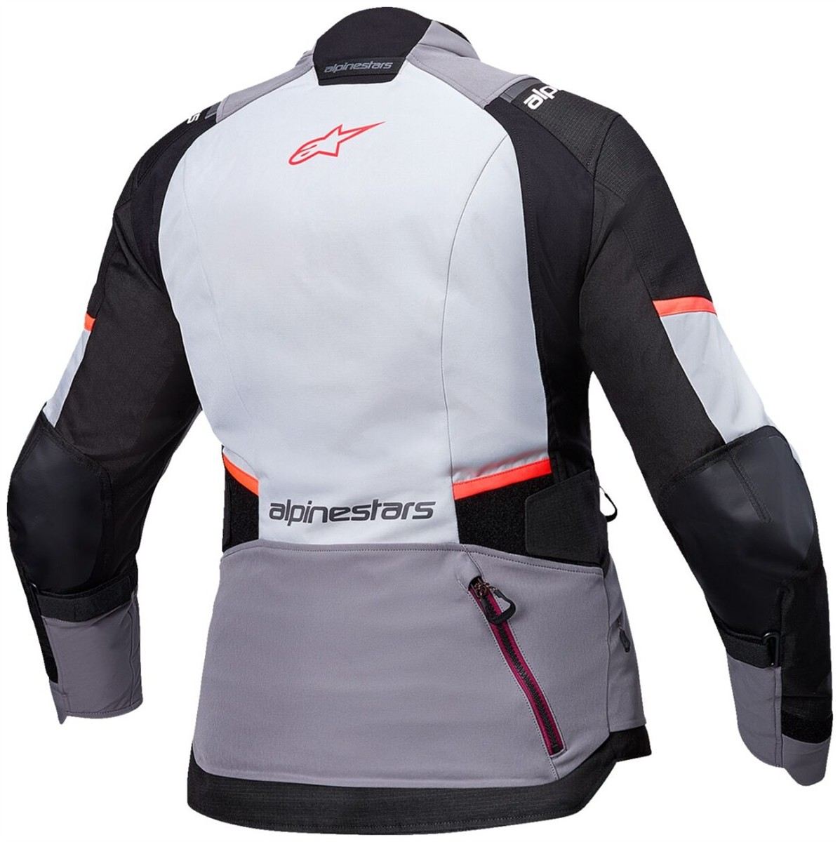 Stella Andes v4 Drystar® Jacket blends advanced functionality with a sleek, modern style, that adventure riders and commuters alike will appreciate for its practicality and all-weather performanceDrystar® construction ensures 100% waterproof protection and breathability for all-weather ridingJacket incorporates large stretch softshell panels for mobility and ripstop reinforcements in key areas for added durability. With a detachable, full-sleeve thermal lining, direct ventilation on the chest, and an overlap back closure for air circulationConstructed from reinforced 450D poly-fabric textile for durability and all-weather performanceDrystar® Membrane provides 100% waterproofing in wet conditionsExtended direct ventilation openings for enhanced airflow, designed for optimal air circulation while ridingAnatomically designed for the female figure, the jacket offers a customizable fit with waist adjusters, collar drawstring adjuster, bicep snaps, forearm straps, wrist closures, elongated hem with greater coverage in the rear for comfort, along with a hydration hose loop on the chestMultiple waterproof (WP) and water-resistant (WR) pockets, including two internal pockets and a large rear back compartmentImpact Protection Featuring Level 1 Nucleon Flex Plus shoulder and elbow armor for effective impact resistanceAdvanced poly-fabric and Drystar® construction for durable waterproofing and comfort in all conditionsDrystar® membrane may be worn both over and under the jacket, depending on rider preference adding to its versatilityDurable ripstop and PU reinforcements in high-abrasion areas (shoulders, elbows, and forearms) for added durabilityPre-contoured sleeves with stretch panels for flexibilityElongated direct ventilation air intakes for high levels of airflowRemovable, long-sleeve thermal liner (100g body,80g sleeves) for versatile weather comfortIntegrated chest and back compartments ready for Nucleon PLASMA or cell back/chest protectors, available as accessory upgradesMultiple waterproof and water-resistant pockets, including a large WP back compartment, WR cargo pockets with an integrated extra quick access pocket, ensure ample storage space for practical adventure riding and commuting needsWaterproof VISLON® zipper for fast front closureReflective inserts for increased rider visibility in low-light conditions