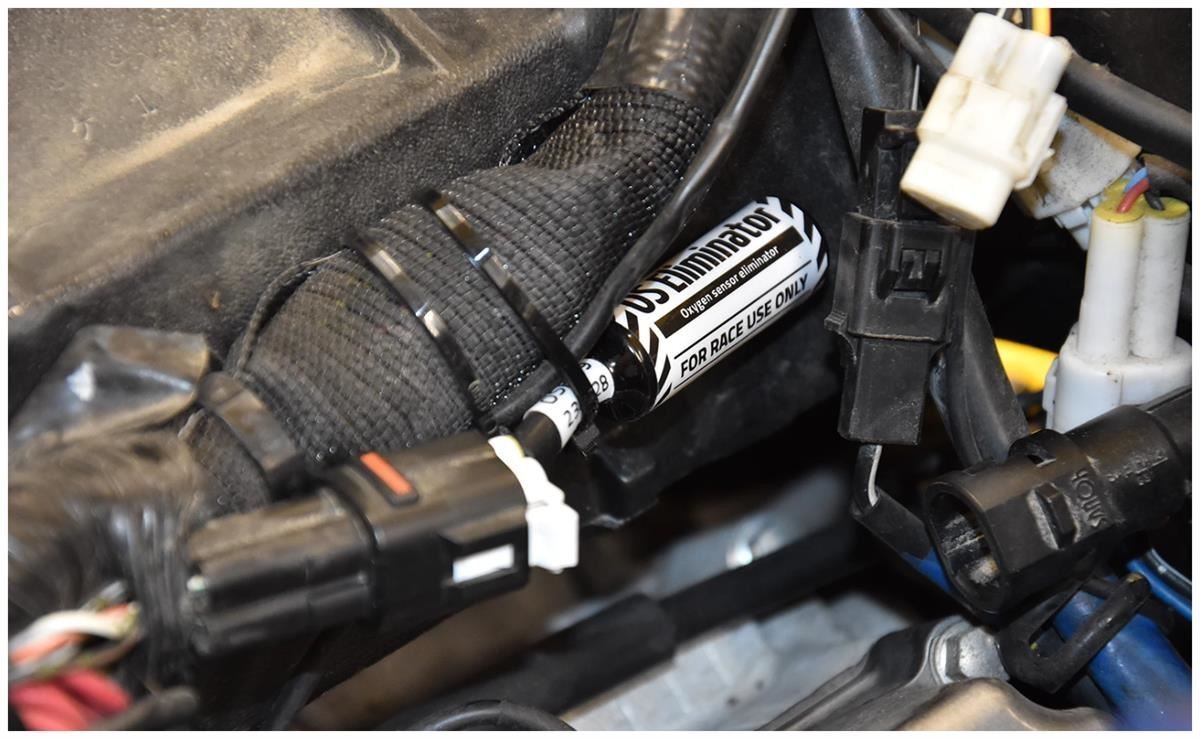 The OS Eliminator enables the disconnection of the factory oxygen sensor (lambda probe) from the motorcycle’s main wiring harness without getting an FI error code.