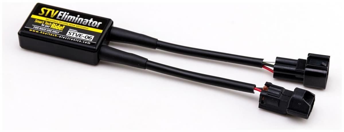 Because of emission and noise control regulations secondary throttle valves appeared in motorcycles in the last decade. The bike’s ECU controls this secondary butterfly. For maximum performance and crisp throttle response, this secondary system is usually removed – mainly in drag racing/road racing. However, as soon as you disconnect the secondary throttle valve actuator motor from the bike’s main wiring harness, the FI light will light up on the dashboard. The STV Eliminator plugs into the bike’s wiring loom directly. With the help of this small unit, you’re able to remove the whole secondary valve assembly with the actuator motor, the butterfly valve plates and the rod/shaft too. Get the job done properly with this easy fix!