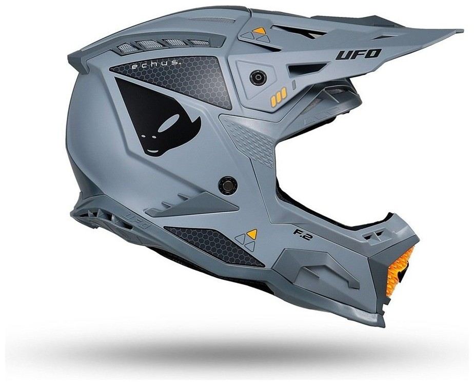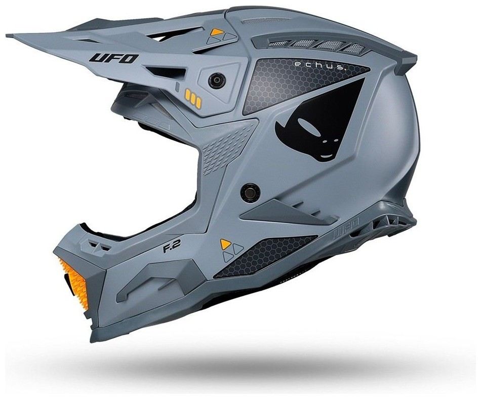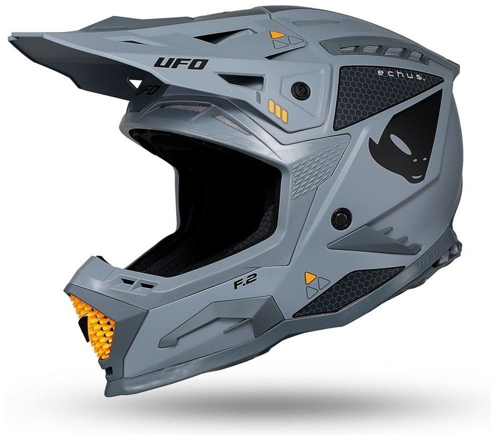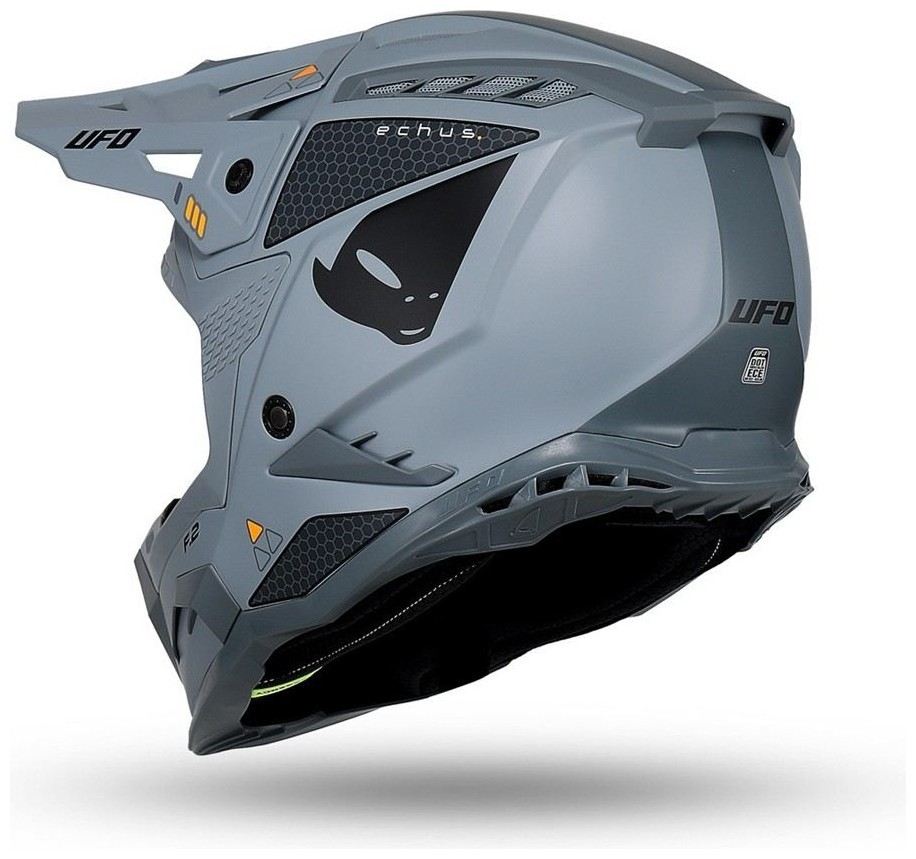 Off Road Echus helmet by Ufo Plast with the latest generation of HPF (High Performance Fiberglass) molded outer shell : this composite fiber is melted together to obtain a single ultra-resistant and flexible layer.