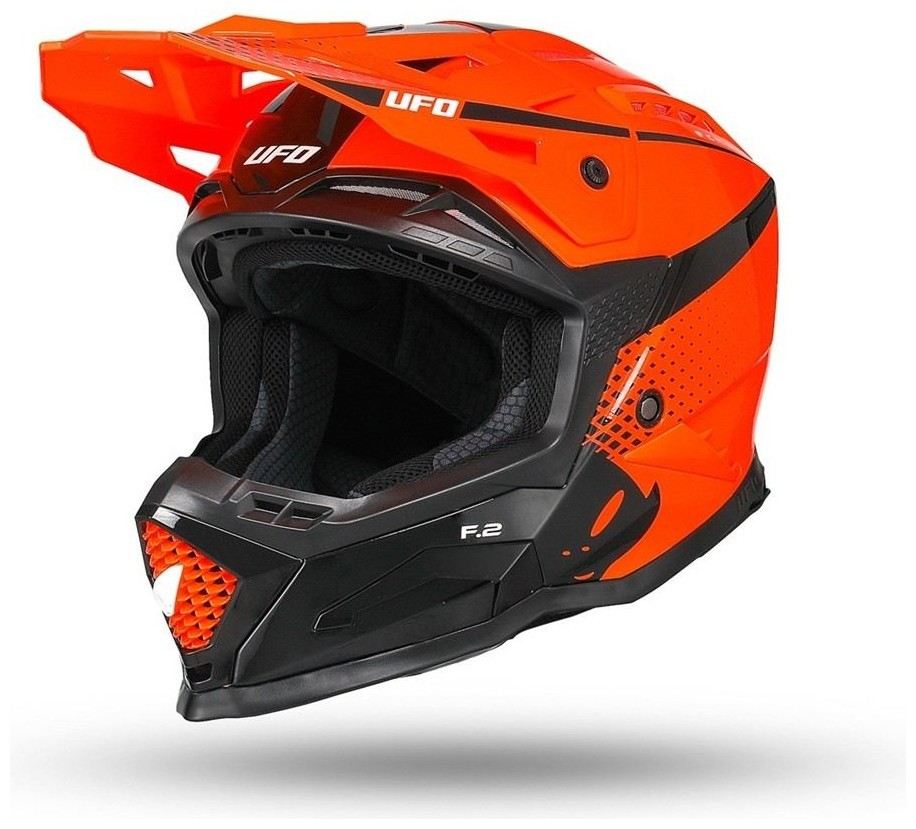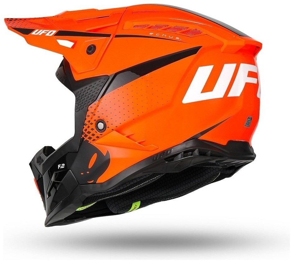 Off Road Echus helmet by Ufo Plast with the latest generation of HPF (High Performance Fiberglass) molded outer shell : this composite fiber is melted together to obtain a single ultra-resistant and flexible layer.