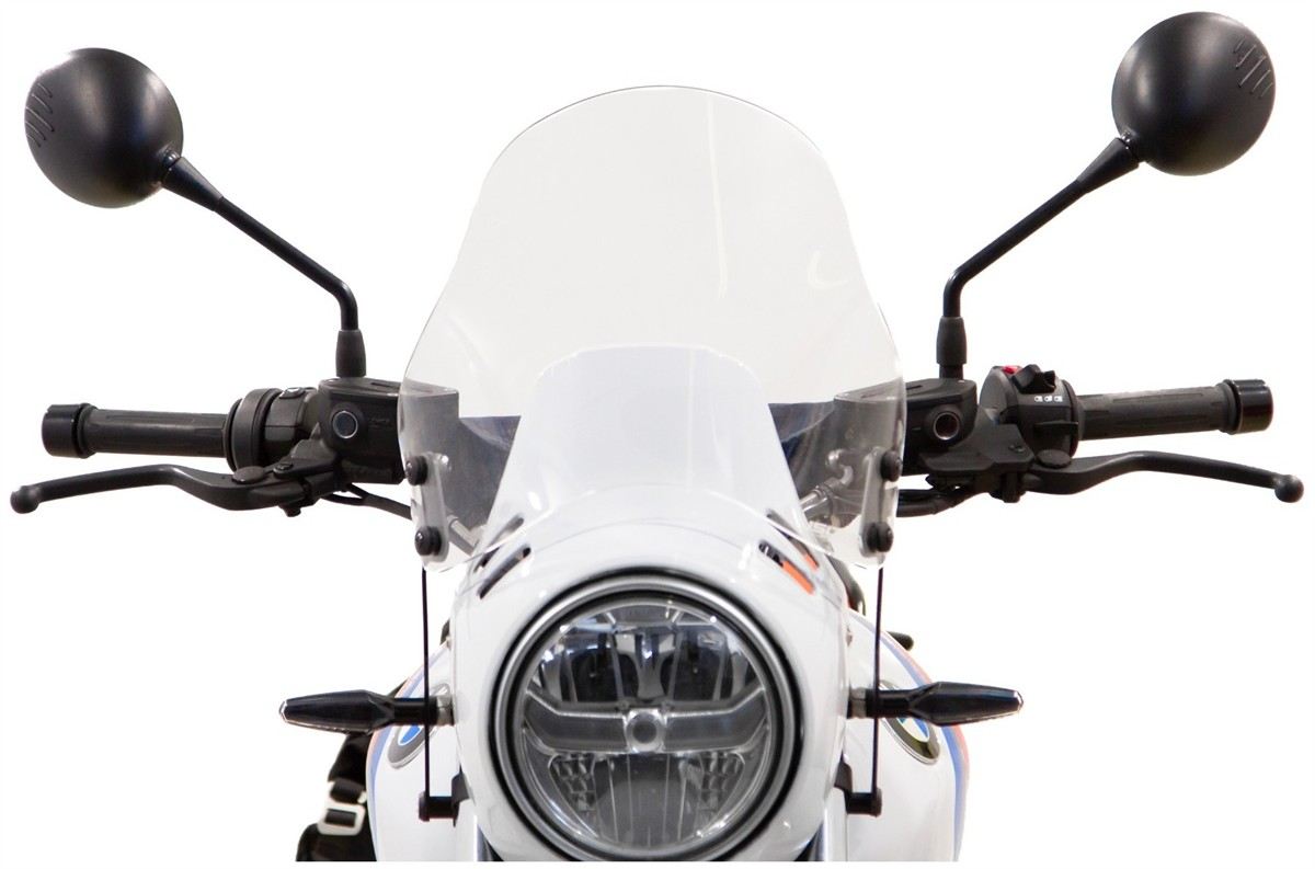 Cupolino made to enhance the aggressive and sporting line of the BMW Nine T Urban , for those who love fast driving without compromises in the street and off the road. It is designed by our designers to lighten the air from the chest even when driving at sustained speed. Our windshield attacks on two points of the bike, one of which to the fork which is fixed with anti -vibration elastic joints.