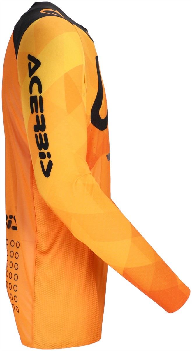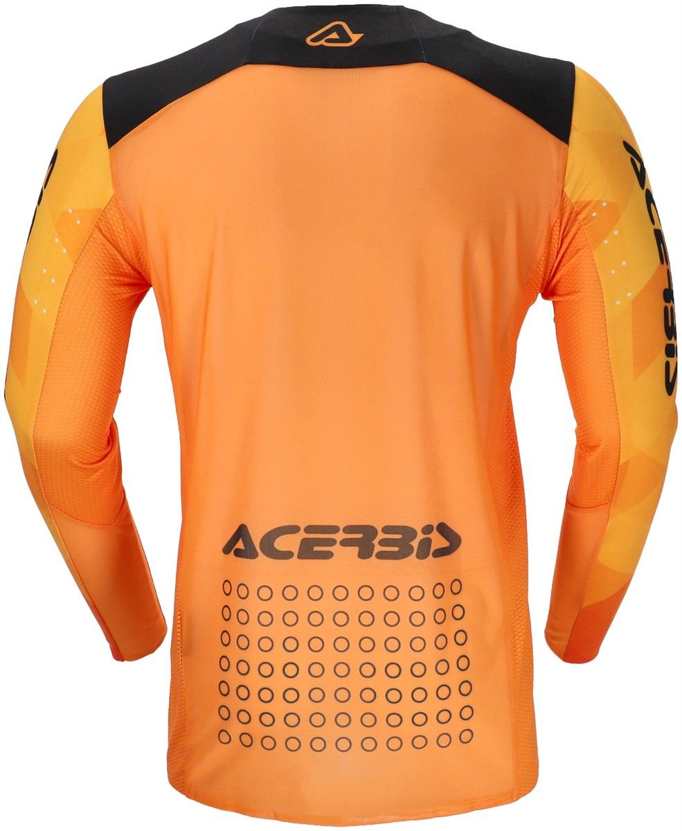 Characterized by the use of stretch fabrics and ventilated mesh, it keeps the body always ventilated. The fitting studied and tested during numerous motocross competitions has led the jersey to adhere perfectly to all the shapes of the rider, guaranteeing any movement, thanks to its incredible elasticity. Taped collar and cuffs avoid seams in annoying places. Laser holes increase ventilation and show the quality and care with which the product was developed.