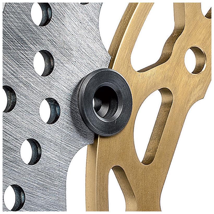 BREMBO RACING SUPERSPORT 5,5-mm discs are fully interchangeable with the original discs and they are designed to fit to the OE calipers as well as with BREMBO Racing. These are floating discs made up of a brake rotor in thermically-treated martensitic stainless steel (capable to stand any thermomechanic strain) and of an CNC alloy-aluminium bell. These two parts are connected to each other using 10 bushings.