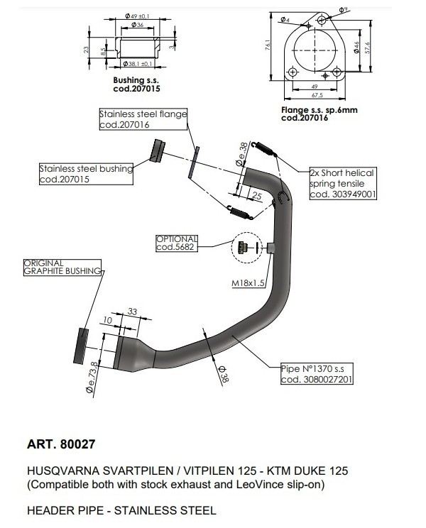 Made of TIG-welded AISI 304 stainless steel, they are developed on the test bench using specific geometries for each model, with the aim of improving torque and maximum power, while also ensuring weight savings in most cases.