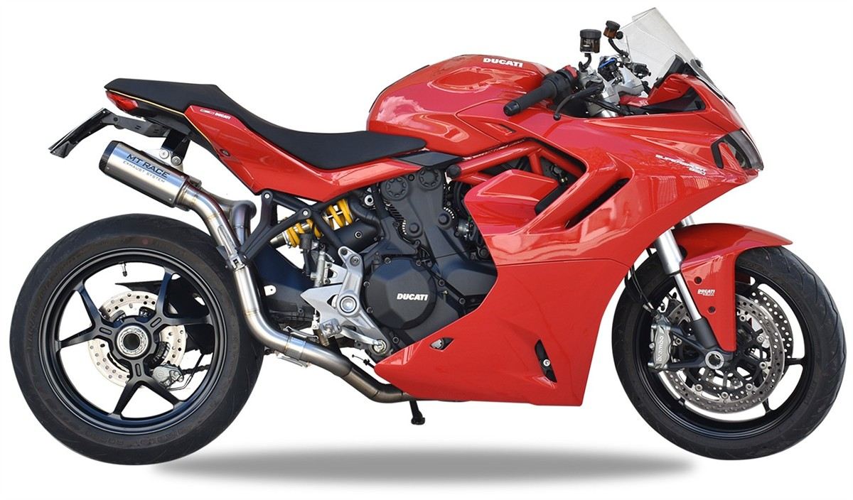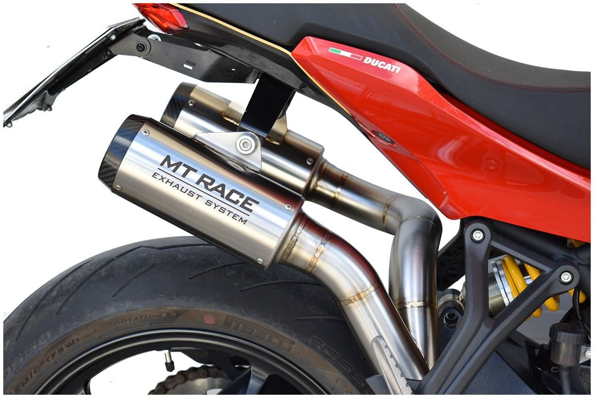 MT RACE GP-2 complete exhaust system no street legal with STEEL pipes and Satin STEEL silencer with CARBON end cap for Ducati SuperSport 950 S 21-24