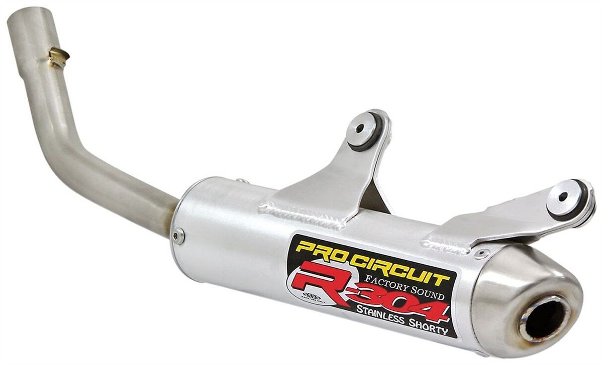 R-304 SilencerFull-race two-stroke silencer The compact design of the short aluminum canister offers optimum performance gains and is recommended for closed-course racing only Hex head screws are used to secure the inlet cap and can be removed easily for quick re-packing of the silencer 304 stainless steel intake tube Double-walled mounting bracket(s) Tig and mig welded for strength and durability E-Glass internal packing for maximum packing life Made in the USA