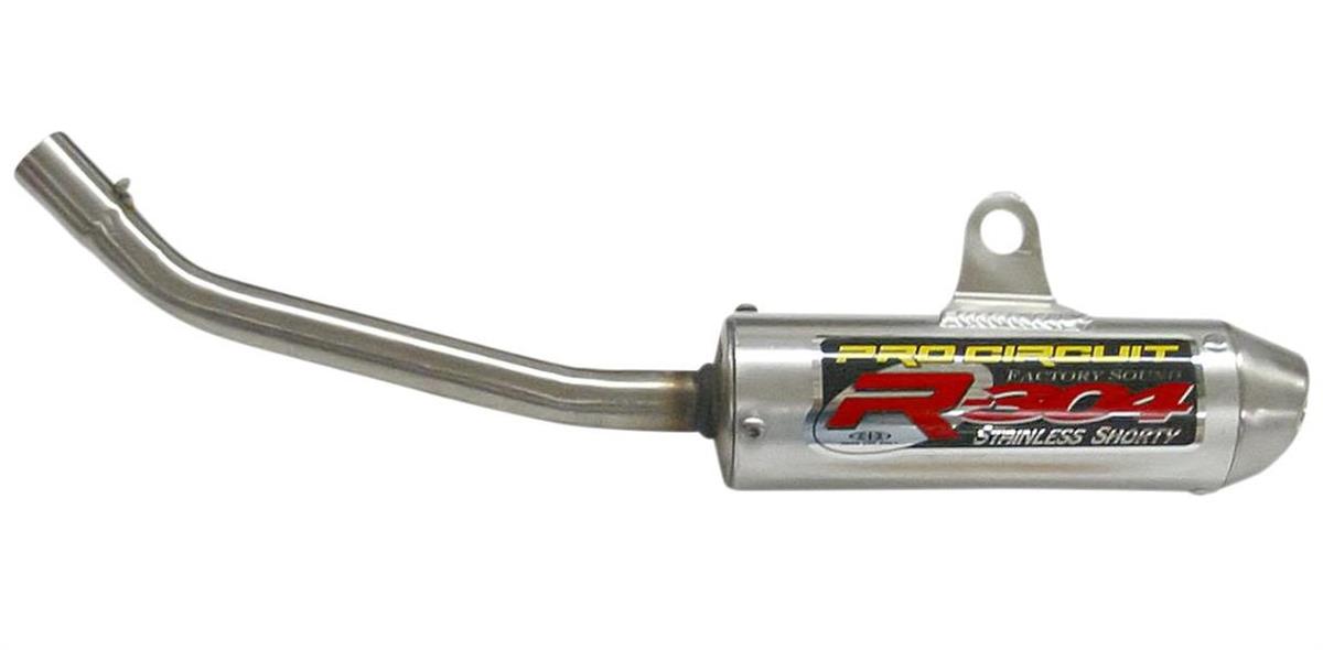 R-304 SilencerFull-race two-stroke silencer The compact design of the short aluminum canister offers optimum performance gains and is recommended for closed-course racing only Hex head screws are used to secure the inlet cap and can be removed easily for quick re-packing of the silencer 304 stainless steel intake tube Double-walled mounting bracket(s) Tig and mig welded for strength and durability E-Glass internal packing for maximum packing life Made in the USA