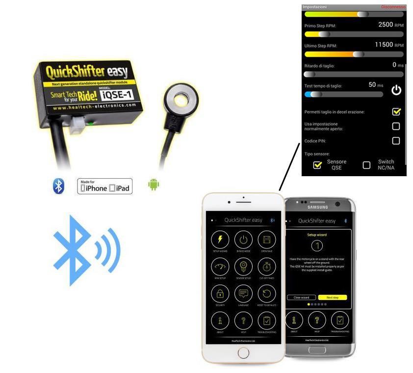 The iQSE is the only quickshifter module on the market which utilizes Wifi technology and iOS + Android app for setup and verification. Can even be disabled with a few taps to restore factory condition e.g. for servicing the bike.
