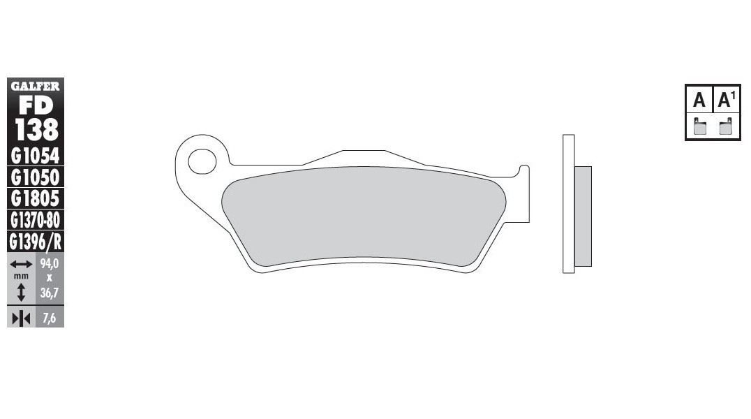 The Galfer G1050 brake pad is made of a semi-metallic compound and is designed for excellent performance and maximum safety even on small to medium-displacement motorcycles.