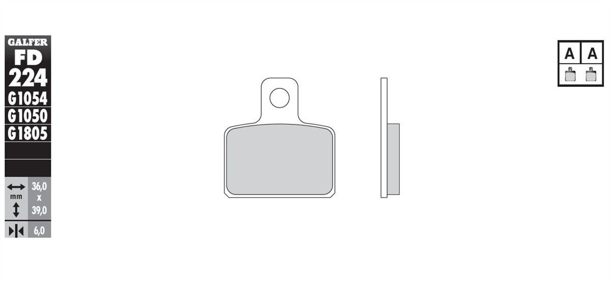 The Galfer G1050 brake pad is made of a semi-metallic compound and is designed for excellent performance and maximum safety even on small to medium-displacement motorcycles.
